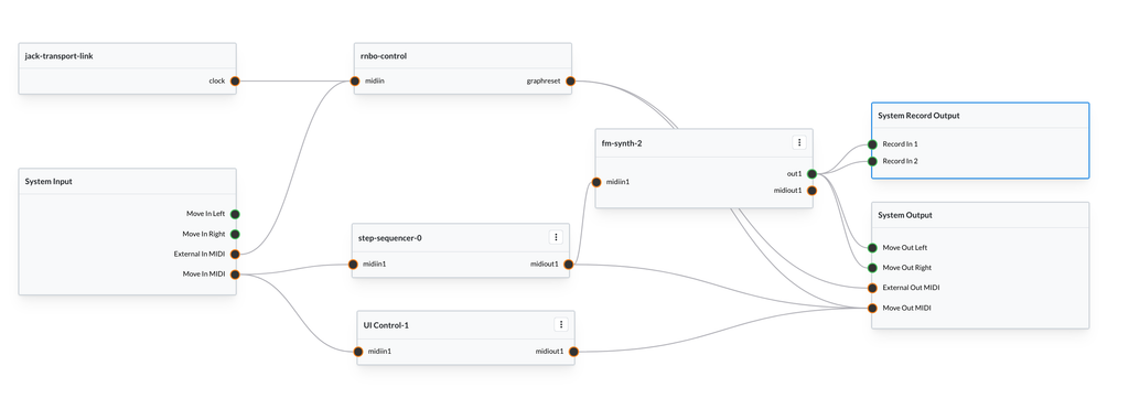 - Produce MIDI, either to change the appearance of the Move, or to send audio/MIDI downstream to the next node.